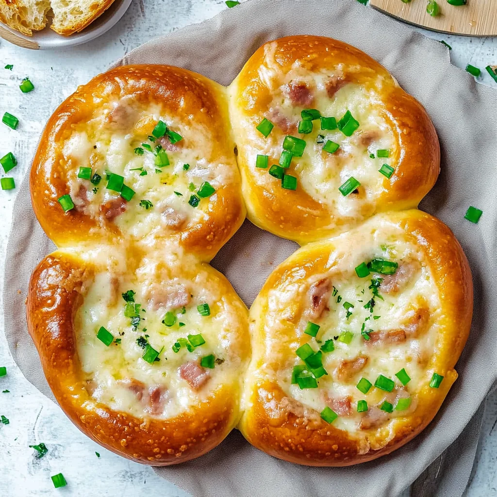 Überbackene Brezeln mit Schinken & Käse sind der Inbegriff von Gemütlichkeit und Genuss. Stellen Sie sich vor, wie sich der köstliche Duft von frisch gebackenem Brot mit dem herzhaften Aroma von geschmolzenem Käse und zartem Schinken vermischt – einfach unwiderstehlich!